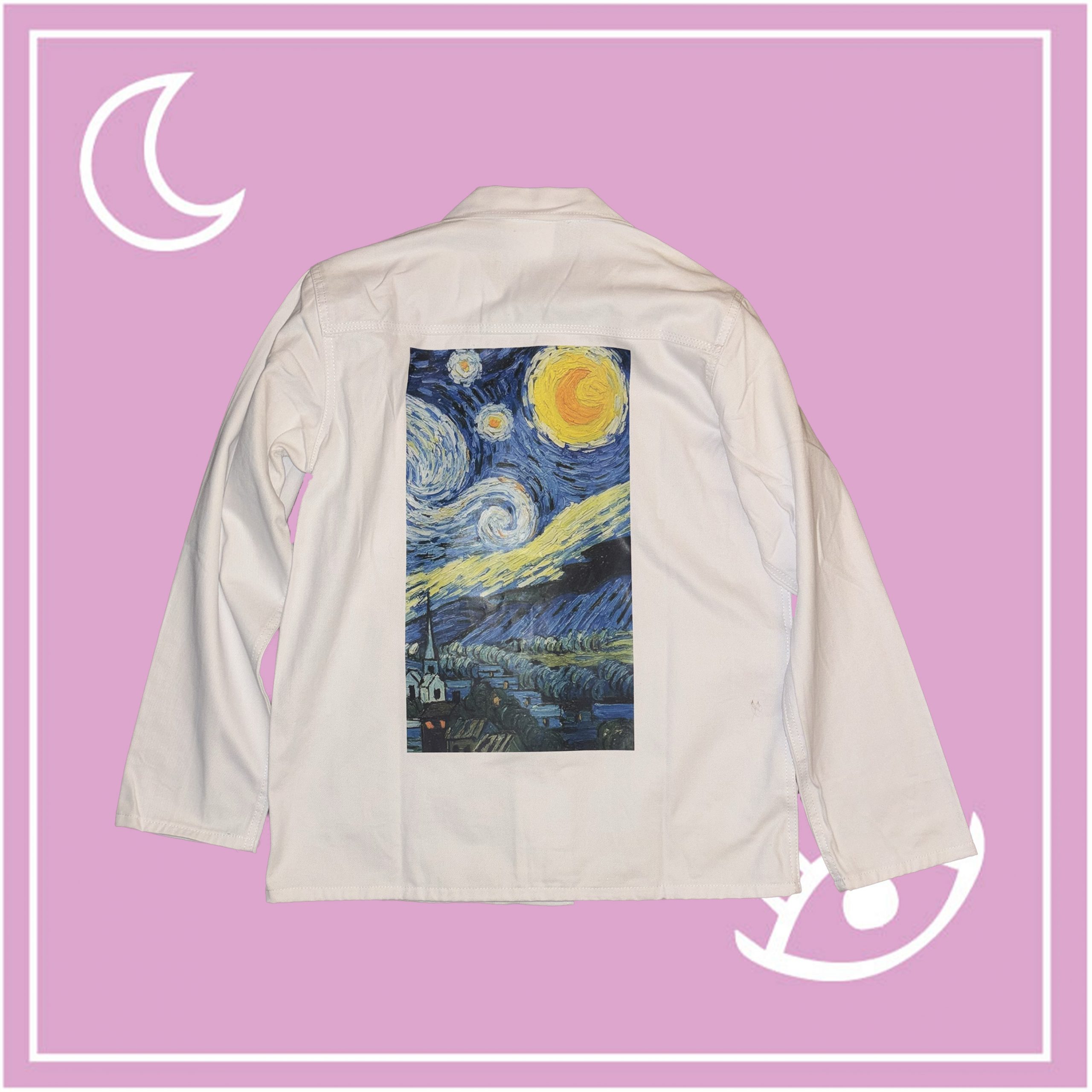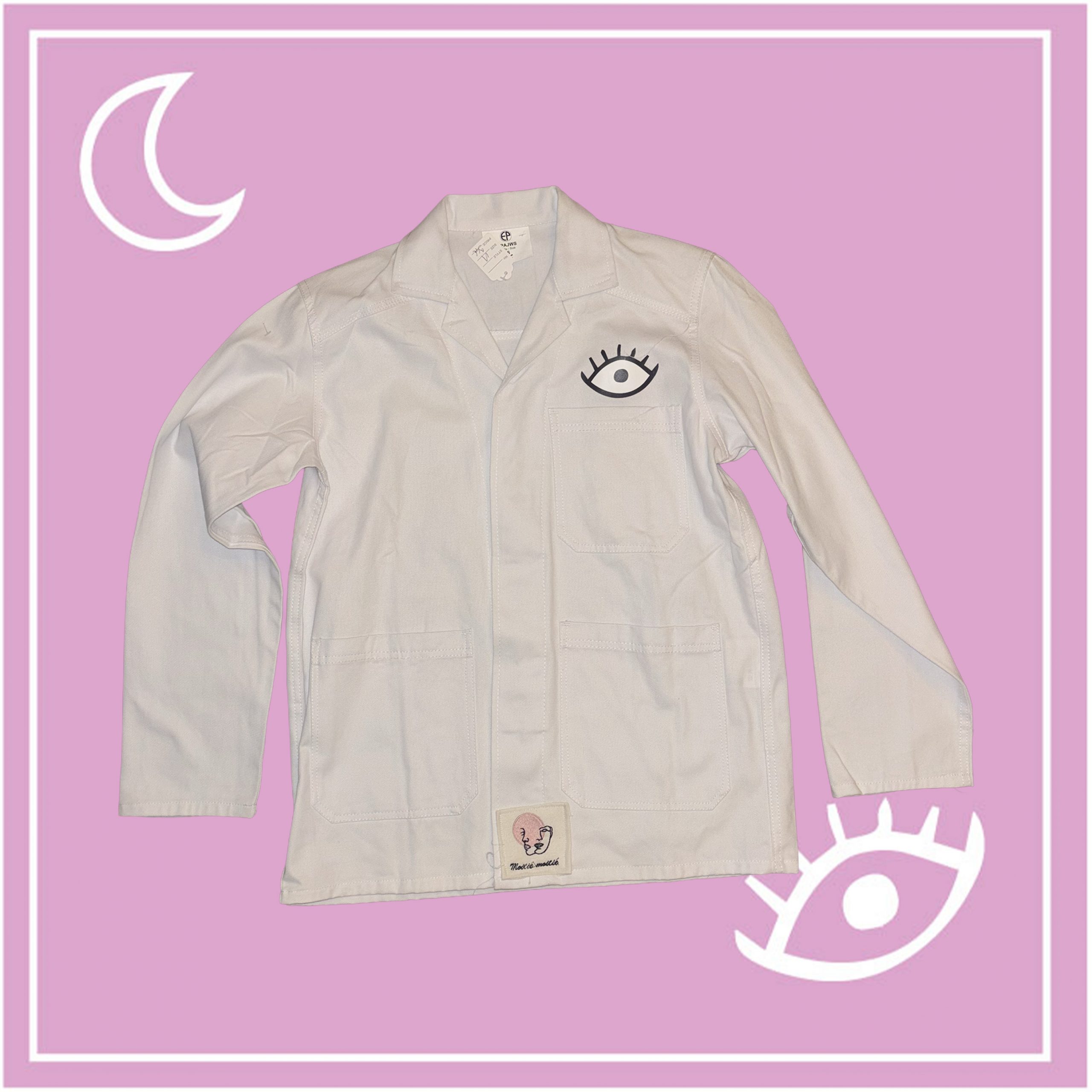Cette veste est upcyclée sur la base d’une veste en jean de seconde main. Elle possède un flocage dans le dos et un côté cœur ainsi qu’un col chemise, une fermeture à bouton sur l’avant ainsi que deux poches plaquées. Elle peut convenir pour une taille plus petite pour un effet oversize.